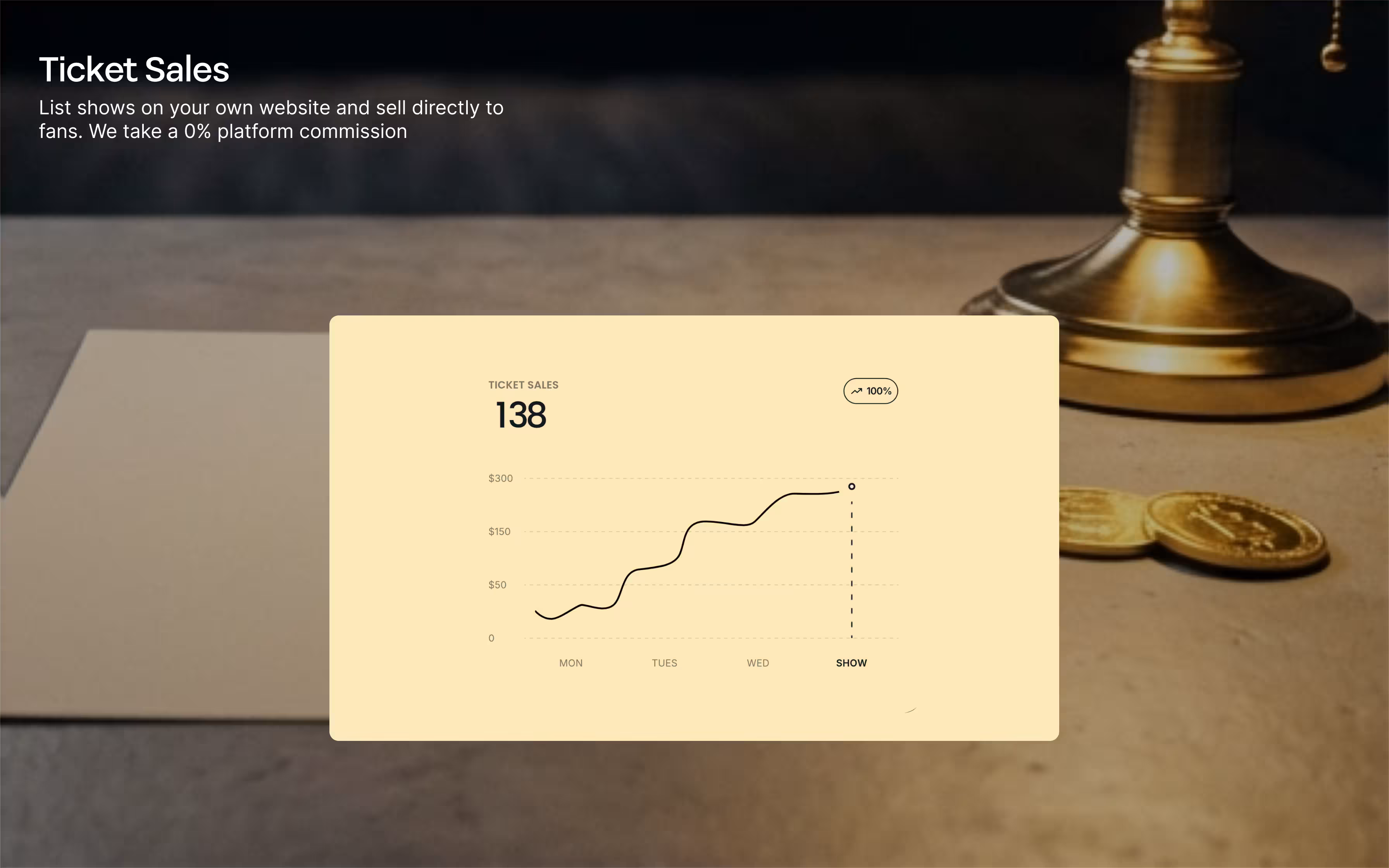 Publish your website instantly. Add your Spotify player, list shows, and generate your stage plot all from one dashboard.